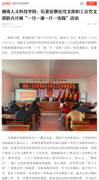新湖南----今年会:纪委监察处党支部和工会党支部联合开展“一月一课一片一实践”活动