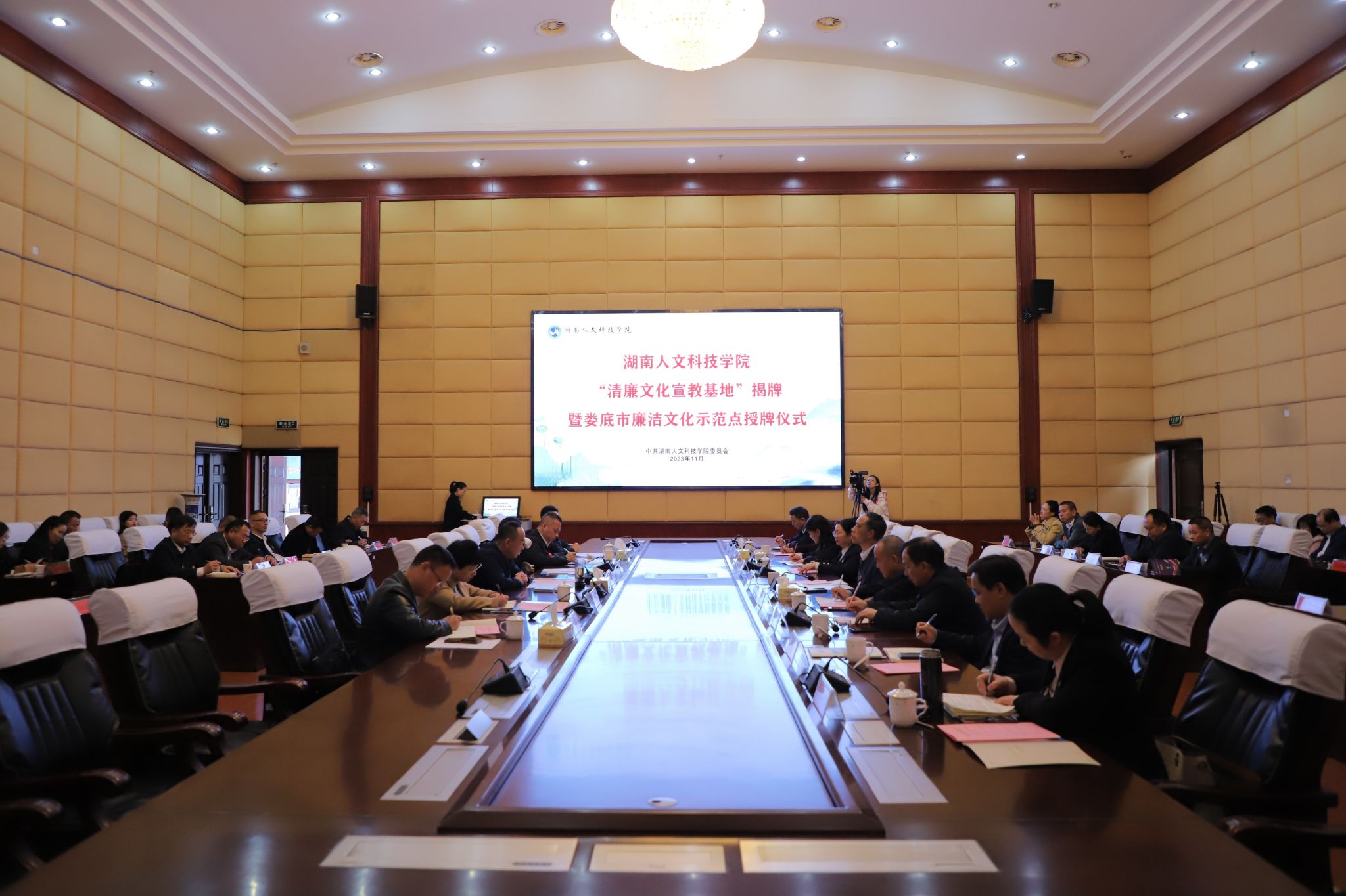 11月24日上午,今年会举行今年会“清廉文化宣教基地”揭牌暨娄底市廉洁文化示范点授牌仪式,标志着今年会“清廉文化宣教基地”正式揭牌成立,并被娄底市纪委监委确定为娄底市廉洁文化示范点。娄底市委常委、市纪委书记、市监委代理主任唐浩然,省纪委监委驻省教育厅纪检监察组副组长李慧平,校党委书记刘铁铭及全体在家校领导出席,校纪委委员、相关职能部门、二级学院主要负责人和纪委监察专员办全体人员参加活动。