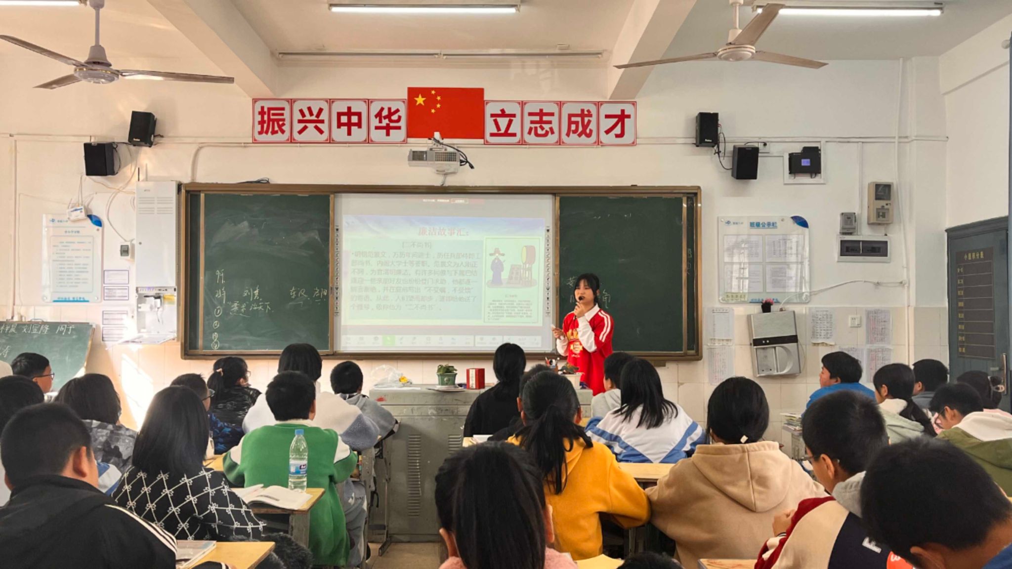 新时代廉洁文化具有鲜明的时代特征,是优秀的传统文化与时代精神的结合。活动中,学生党员立足文学院专业特色,发挥能力素养,站上三尺讲台,用平实的言语向娄底第八中学初一年级的学生宣讲清廉文化,为他们种下清廉种子,同时也加深了学生党员对清廉的认识,树牢了清廉意识。(供稿人:陈笛;一审:邹扬;二审:毛永宁;三审:尹钟宏)