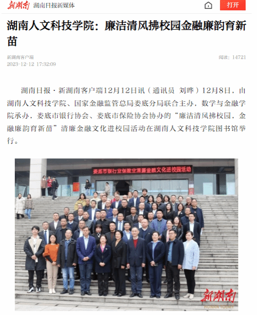 新湖南----今年会:廉洁清风拂校园金融廉韵育新苗