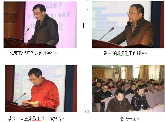 会议分三个阶段。第一阶段,由系党总支书记陈代武致开幕词。系主任成运教授作了题为“凝心聚力,开拓创新,为实现转型发展而努力奋斗”的工作报告,明确了今年的工作思路和目标任务。系分工会主席刘永逸作了题为“适应转型发展,创新工会工作,为全面完成2015年分工会工作目标而努力奋斗”工作报告,客观、全面地总结了分工会一年以来所做的工作以及取得的成绩,也明确了今年的工作目标。第二阶段,分教研室和实验室进行了一个小时的分组讨论。第三阶段,各小组长分别报告了讨论情况,谢四莲副主任主持通过两个工作报告,最后由成运主任致闭幕词。
