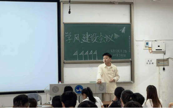 为明确新学期班级工作重点,加强学院学风建设与学生综合素质培养,信息学院于9月18日中午在百全楼103召开学风建设大会。辅导员杨艺蕾、代鑫龙、李海艳及23级24级各班班长学委参与会议。