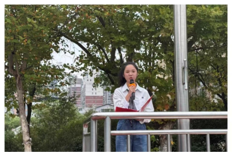 伴着金秋晨风,仪式正式启动。在“迎国旗”指令下,国旗护卫队迈着铿锵步伐护送国旗入场,全体师生肃立行注目礼。国歌奏响,五星红旗冉冉升起,嘹亮歌声中满含信息学子对祖国的崇敬与赤诚。
