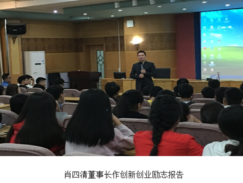 与此同时,我院优秀校友深圳市有棵树科技有限公司董事长肖四清先生在养根楼多媒体报告厅为我院同学作了一场创新创业励志报告,他以自己的亲身经历向大家讲述了创业过程及成功创业的要素,他说到,忠诚、效率、极致是一个成功高管具有的必备条件,并谈到创业也可以走向海外市场,尤其是在一些发展中国家有很多的机会。同学们深受启发,踊跃提问,和肖四清进行了深入的探讨。