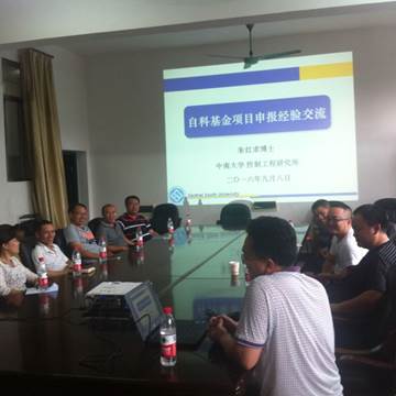 2016年9月8号下午4点半,我院“信号与信息处理”校级重点学科建设团队,邀请中南大学朱红求博士在百全楼211会议室做如何成功申报国家、省级自科基金项目学术讲座。朱博士长期参与自科基金项目评审,具有丰富的实践经验,他就如何选题和如何撰写申报书介绍了宝贵经验,并就课题申报过程中的一些常见问题与老师们进行了交流讨论,气氛活跃,老师们受益匪浅。