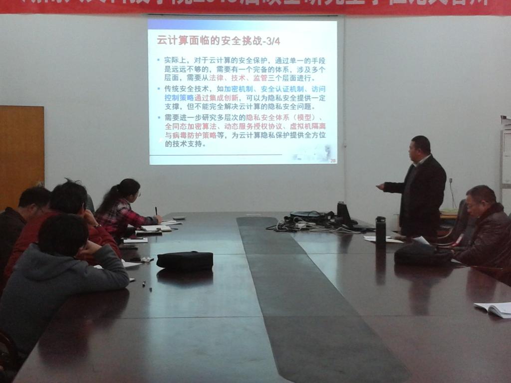 2015年12月1日下午,我系在养根楼104会议室,举行了“云计算环境下新的安全问题及研究现状”与“面向物流追踪的RFID数据管理”两场学术讲座,分别由学院英才计划支持者易叶青与谢东两位博士主讲。本次讲座由唐淑红副主任主持,成运主任、陈代武书记、刘永逸副主任及我系10余名老师和2015级研究生生参加了此次学术报告。