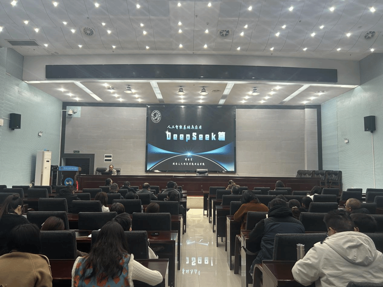 2025年3月20日,信息学院公共计算机教研室阙清贤副教授在图书馆第二会议室主讲了“人工智能基础与应用(DeepSeek篇)”专题讲座。学院院长谢四连教授主持会议,全院100余名教师共同参与。此次培训聚焦国产开源AI平台DeepSeek的核心功能及其在教育、科研领域的创新应用,通过理论解析与案例实操相结合的方式,为高校教师数字化能力提升注入新动能。