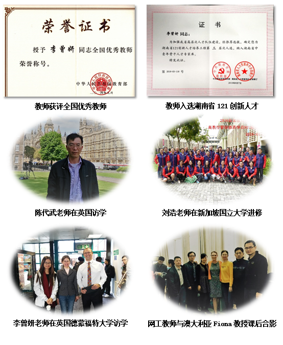 教学团队为湖南省普通高等学校本科教育教学优秀基层教学组织,全国优秀教师、省121创新人才、省青年骨干教师、海外名师云集。建设有湖南省一流本科课程、湖南省名师空间课堂等,教学质量一流。