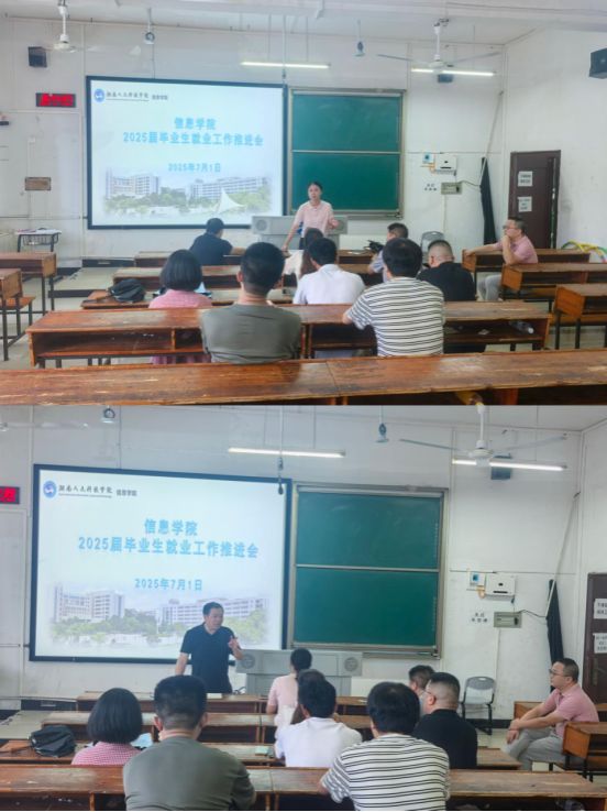 7月1日信息学院召开2025届毕业生就业工作推进会,会议由学工办主任颜聪玲主持,信息学院领导班子及毕业班班主任、分管辅导员参会。