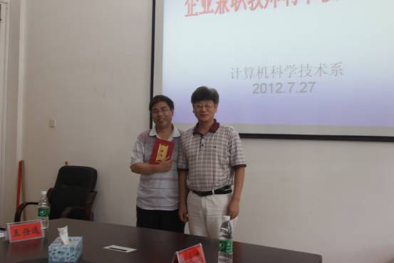 教务处副处长高平同志为王任远先生颁发计算机系兼职教师聘书