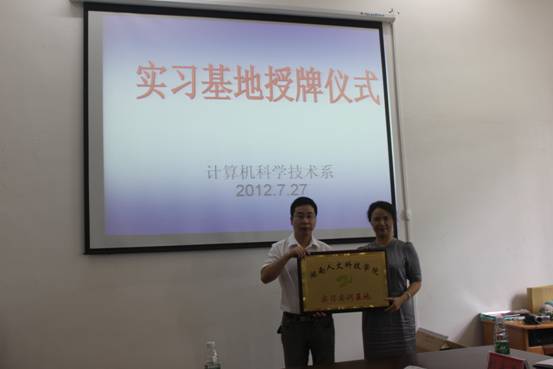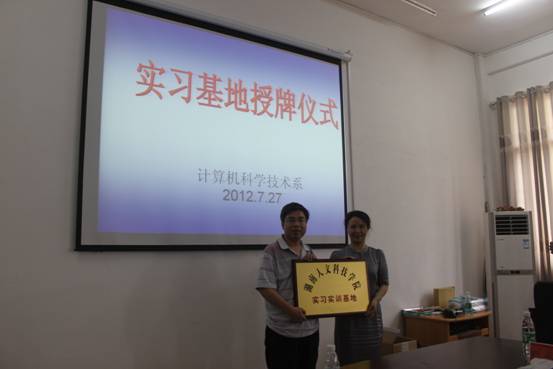 计算机系主任羊四清教授为长沙飞智益思信息科技有限公司经理罗风女士授牌