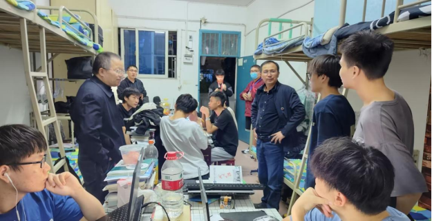 为进一步深入了解学生的生活、学习、就业方向等方面的问题,副校长刘建勋与我院成运书记等领导于11月2日晚8时莅临男生寝室开展“三联系”工作。