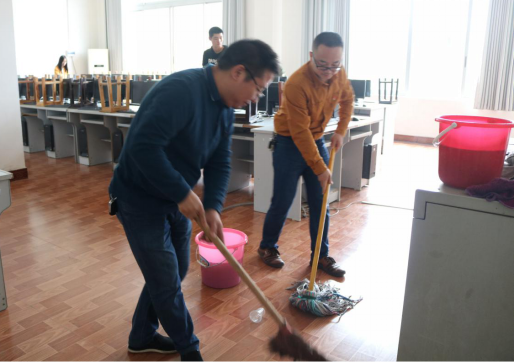 15点20分师生党员在百全楼集合,党总支书记谭甲凡对本次义务劳动进行了安排布置。师生一起对匠成楼和养根楼实验室进行全面的清扫和整理。院领导带头,靠前指挥,全体同志不怕苦,不怕累、不怕脏,共清扫和整理实验室21间,实验室面貌焕然一新。(颜聪玲供稿)