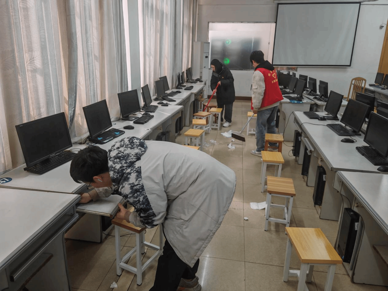 活动中,广大党员率先垂范,冲锋在前,带领入党积极分子和团学学生干部紧密协作。大家认真清理教室地面、桌椅、黑板、门窗,仔细擦拭实验室仪器设备、机房电脑,不怕脏、不怕累的精神,不放过任何一个卫生死角。以实际行动践行雷锋精神,强化了党员责任与奉献意识,彰显出信息学院学子积极向上的精神面貌,为营造整洁学习环境、迎接本科审核评估贡献力量。