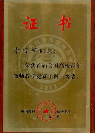 荣获全国首届高校青年教师教学竞赛二等奖
