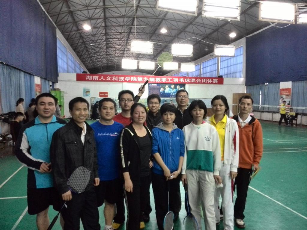 2014年4月19日,今年会第九届教职工羽毛球团体比赛如期举行,全校共有24个分工会和直属工会小组共选派26个队伍参加比赛。此次比赛可谓强手,经过一天紧张激烈的比赛,信工系派出的两支队伍(一队:罗如为刘青胡婵张艳;二队:彭东海张政杨丽英沈亚敏)分别取得第四名和第五名的优异成绩。另外,在明星队与体育系队2:2的情况下,作为明星队队员的罗如为博士与刘志伟老师组合,在决胜局中对阵刘玉江书记和宁耐桥老师组合,经过艰苦拼搏,终于战胜对手,为明星队取得最后胜利做出了贡献。