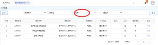 步骤2.点击“操作”下方对应的评价类别,进入评价信息列表页面,可以查看到所有的待评列表。