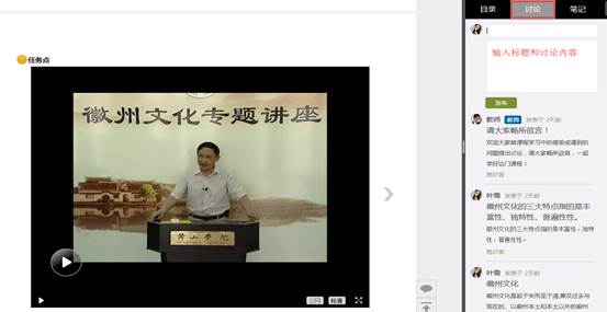 在学习页面的右侧可以发起讨论,查看、回复该课程本班内所有老师、同学的讨论。填写讨论的标题、内容,可以选择讨论的章节范围,点击发布。即完成发起讨论的操作。