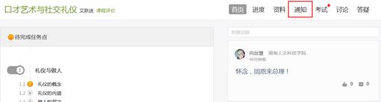 在学习页面的导航栏点击通知,即可查看最新的通知。