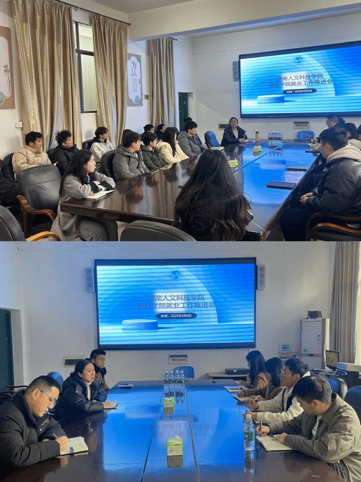 为加快推进学院就业工作,提前为 3 月中下旬即将召开的娄底市专场双选会、学校春季双选会做充分准备与动员,2025 年 3 月 6 日,信息学院组织毕业班分管辅导员、 2025 届毕业生党员分别召开工作例会,全力推动就业工作。