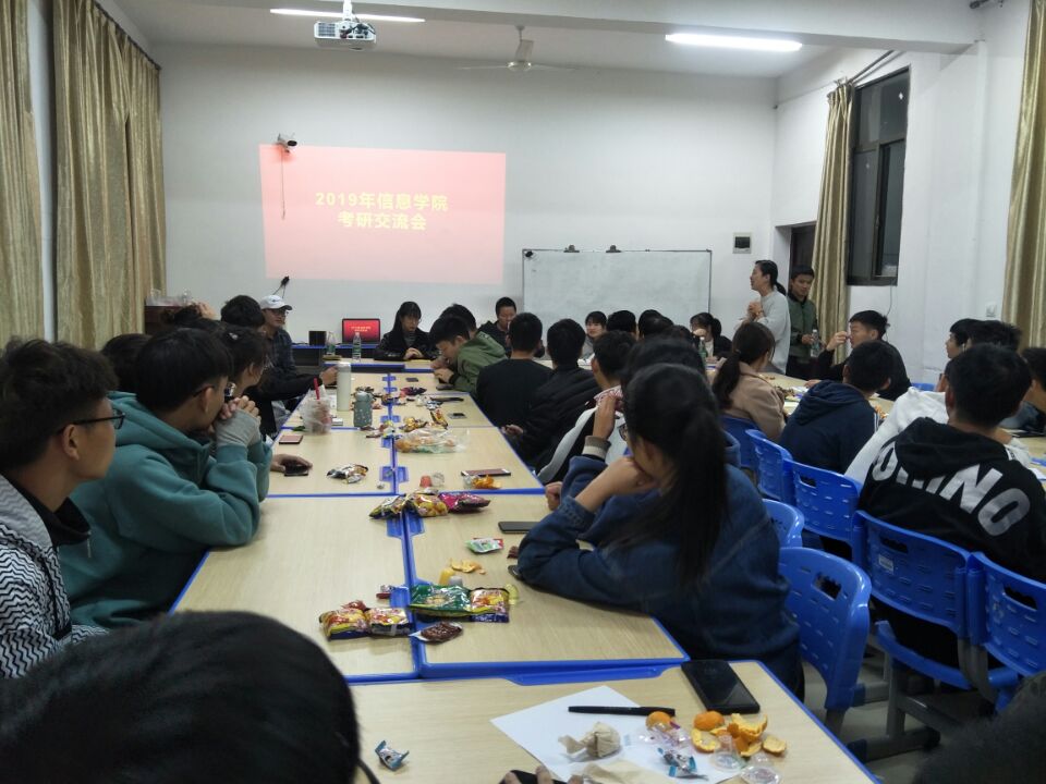 11月22日晚,信息学院在百全楼310召开了2017级学生考研动员交流会。侯海良博士、学生第三党支部书记朱舒腊老师、2016级考研党员同志、2017级40多名通信工程专业学生参加。