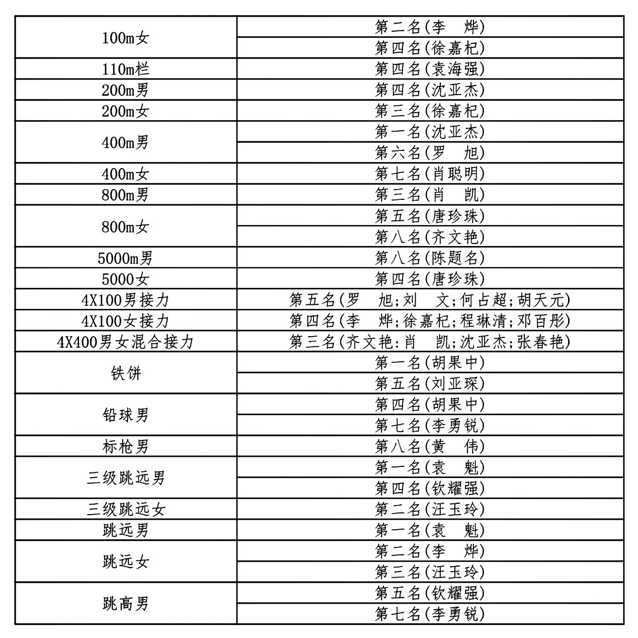 以下是本届运动会中信息学院获奖的运动员名单: