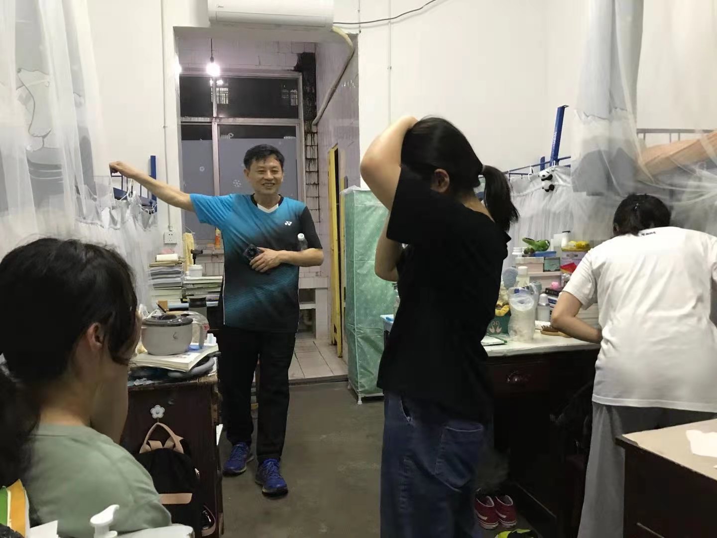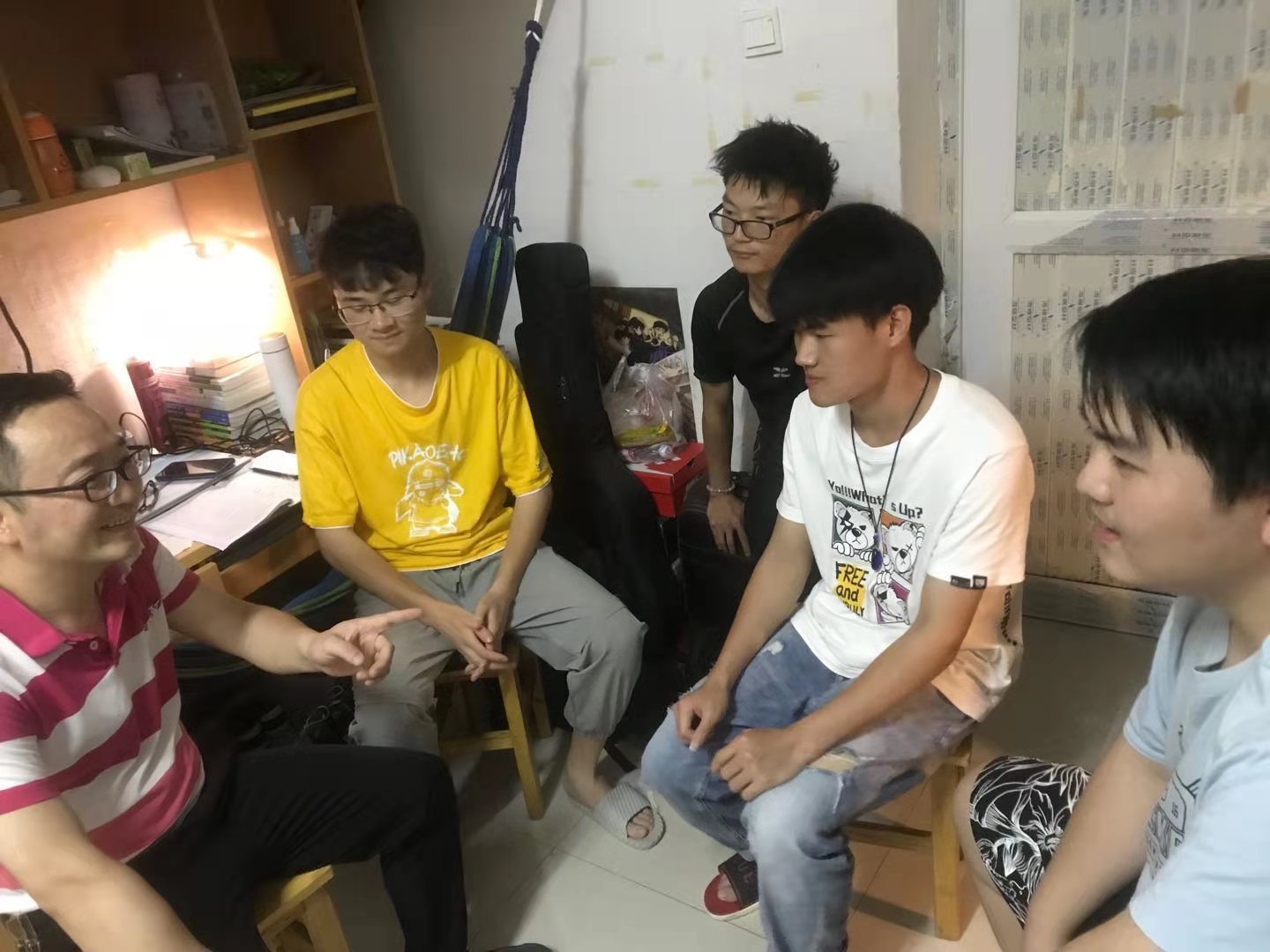 在寝室里,谭甲凡书记亲切地询问了同学们学习、生活、锻炼等情况,并要求大家有任何问题去书记办公室找他。朱高峰院长就学业等方面情况,在宿舍与同学们进行深入交流。
