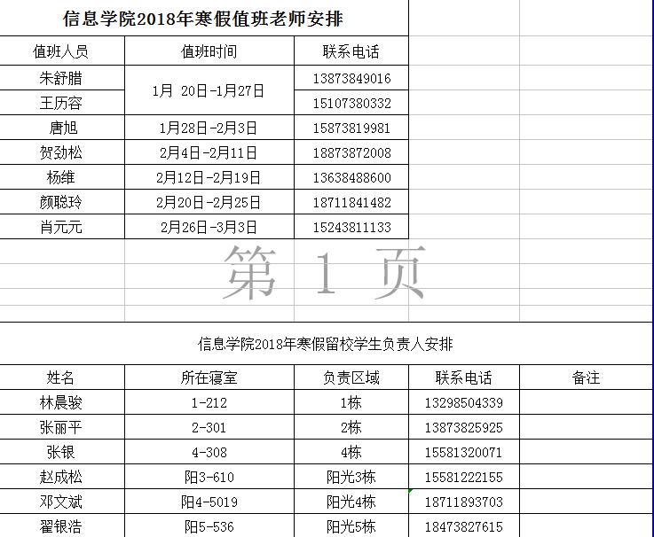 信息学院学生工作办公室2018年寒假值班表及学生负责人安排.xlsx