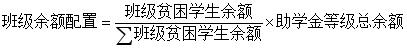 (2)班级贫困学生余额等于班级贫困学生总数,减去该班国家奖学金贫困生、国家励志奖学金、特困配置和定向配置后所得到的人数。