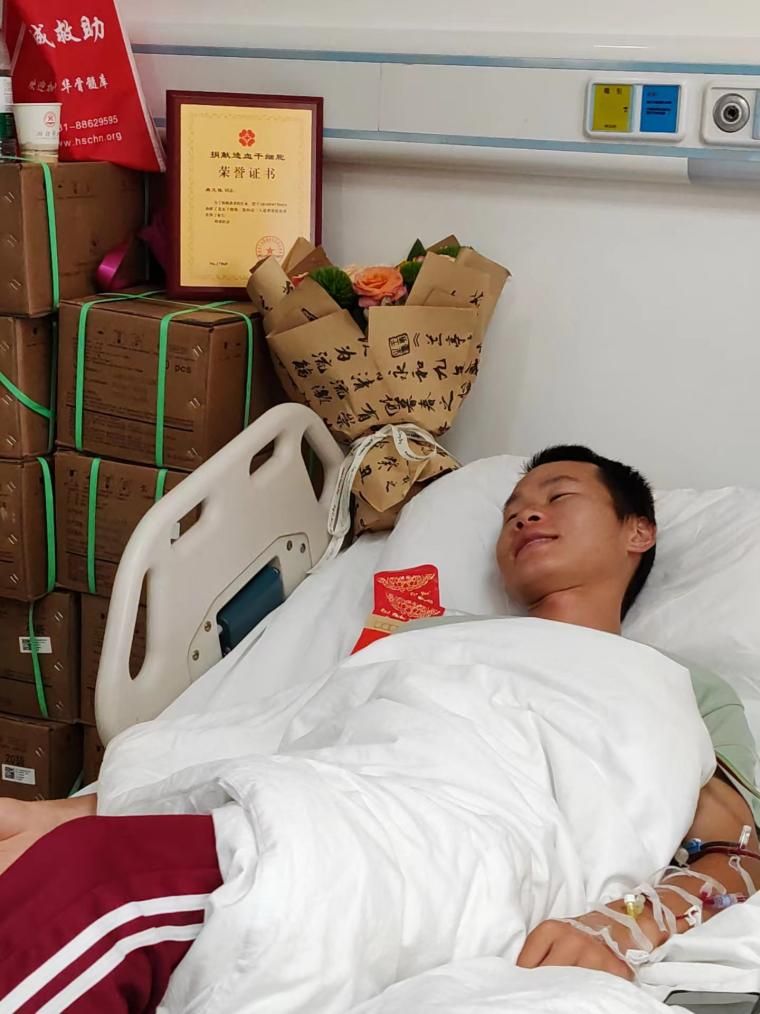 7月8日上午,在中南大学湘雅医院住院部20楼造血干细胞采集室,今年会00后大学生吴文俊静静地躺在病床上,双臂插着针管,随着造血干细胞采集仪器的缓缓启动,开启了他首次造血干细胞的捐献采集经历。“比我想象中的简单多了,我很开心”经过四小时的采集分析,这场十万分之一概率的美好“相遇”即将启程,吴文俊也露出了轻松的笑容。