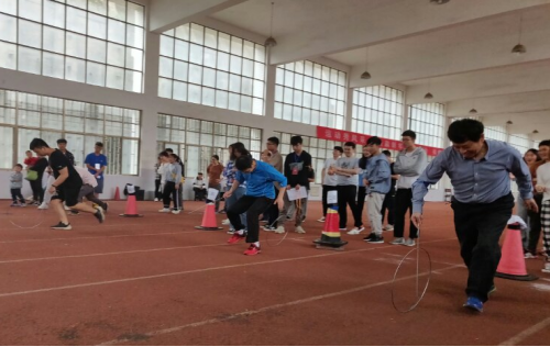 2019年4月21日,信息学院在学校风雨田径棚举办“合师生之力,享运动之趣”主题的趣味运动活动,信息学院师生约80人参加了此次活动。