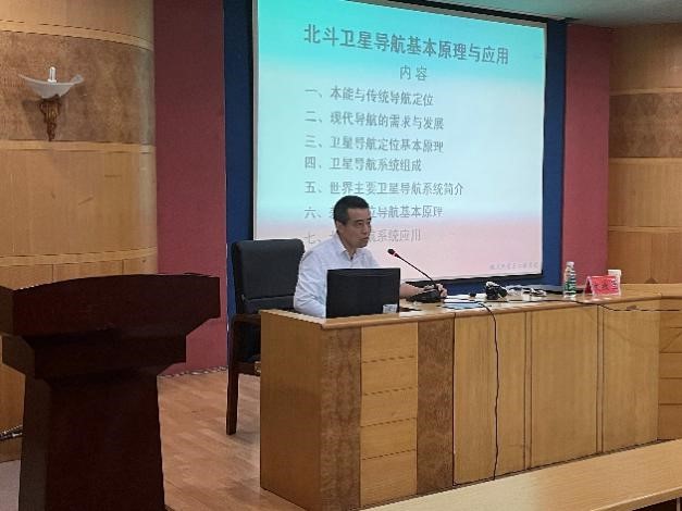文援兰教授结合生活实际案例、生动形象地分析了天文导航、惯性导航、特征匹配导航、无线电导航及卫星导航等几种常见的导航定位方法与原理,凭借其渊博的理论知识和丰富的实践经验,以通俗易懂的语言对卫星导航的原理进行了分析,师生们对卫星导航(包括我国的北斗导航)的原理及应用领域有了一个初步的认识和理解,受益匪浅。