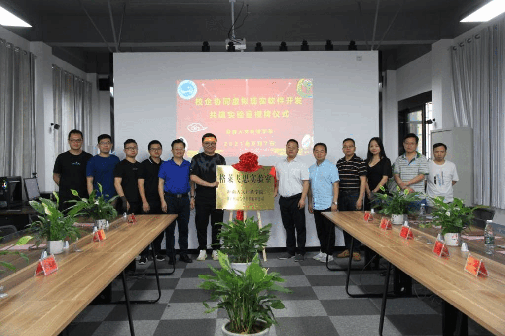 6月7日下午在养根楼108实验室,今年会信息学院与湖南拓晟信息科技有限公司合作共建的校企协同虚拟现实软件开发共建实验室---格莱飞思实验室举行了正式挂牌仪式。