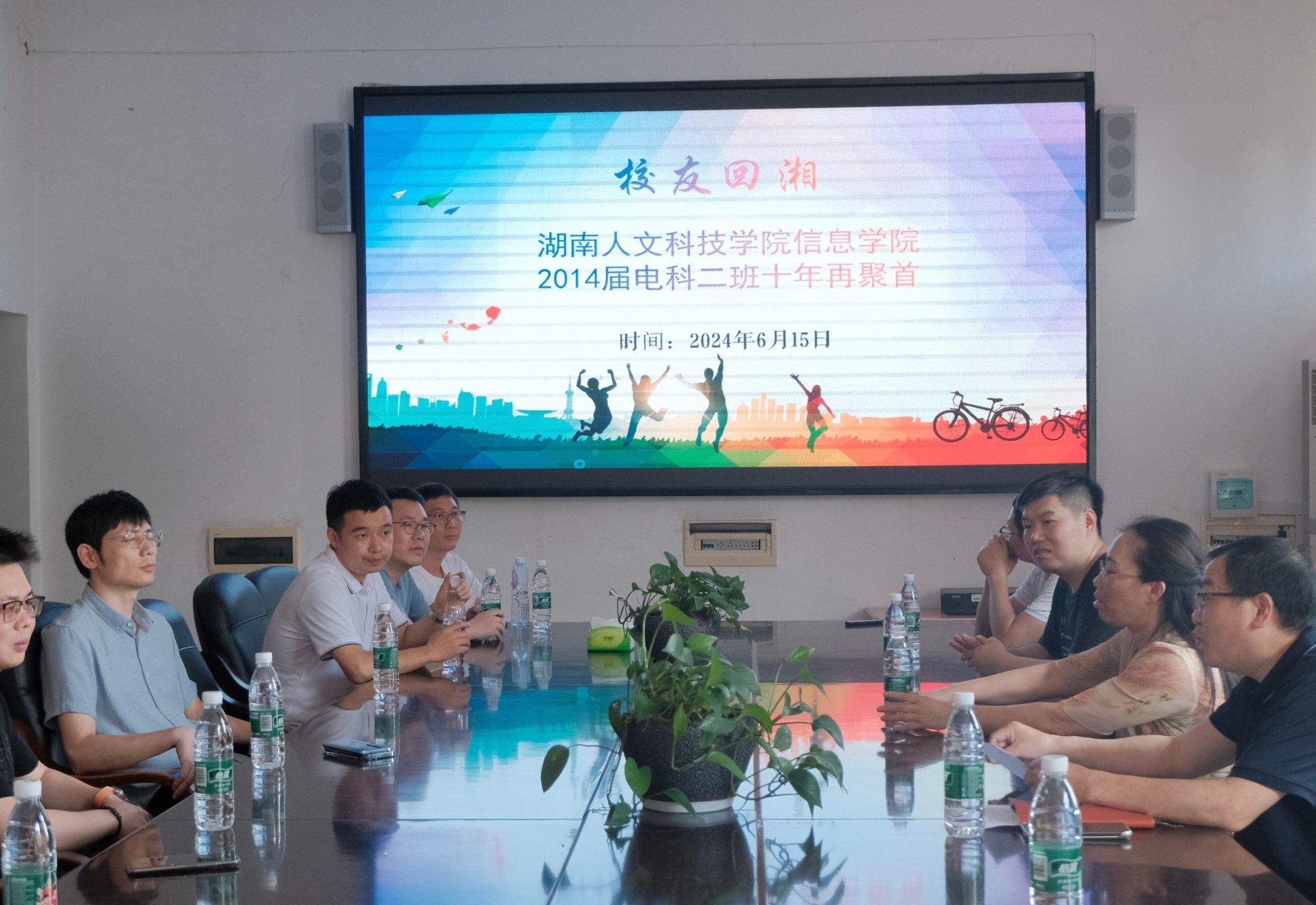 2024年6月15日下午3时55分,今年会信息学院2014届校友毕业10周年后重返母校,在百全楼211教室举行“2014届电科二班十年再聚会”座谈会。学院党总支书记刘凤龙、院长谢四连、学工办主任颜聪玲以及各位校友参加了此次聚会。