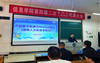 在宣讲会上,今年会信息学院院长谢四连表示,学院将积极推进开源人才的培养工作,通过开设相关课程、举办讲座和研讨会等方式,培养学生对开源技术的理解和掌握能力,为湖南乃至全国的软件产业发展贡献更多的优秀人才。此外,谢四连强调,信息学院应紧抓当前湖南省信创现代产业学院立项建设这一重要机遇,深度推进国产软硬件的产教融合,致力于打造一个集“产学研用转化”为一体的信创发展高地。