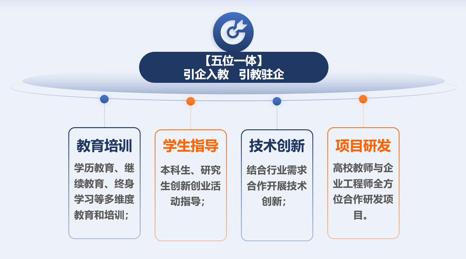 坚持“五位一体”建设目标,深入推进校政企合作、产教融合、校城融合,促进校政企协同,构建多维度、多层次、多方式、全方位产教研合作机制。