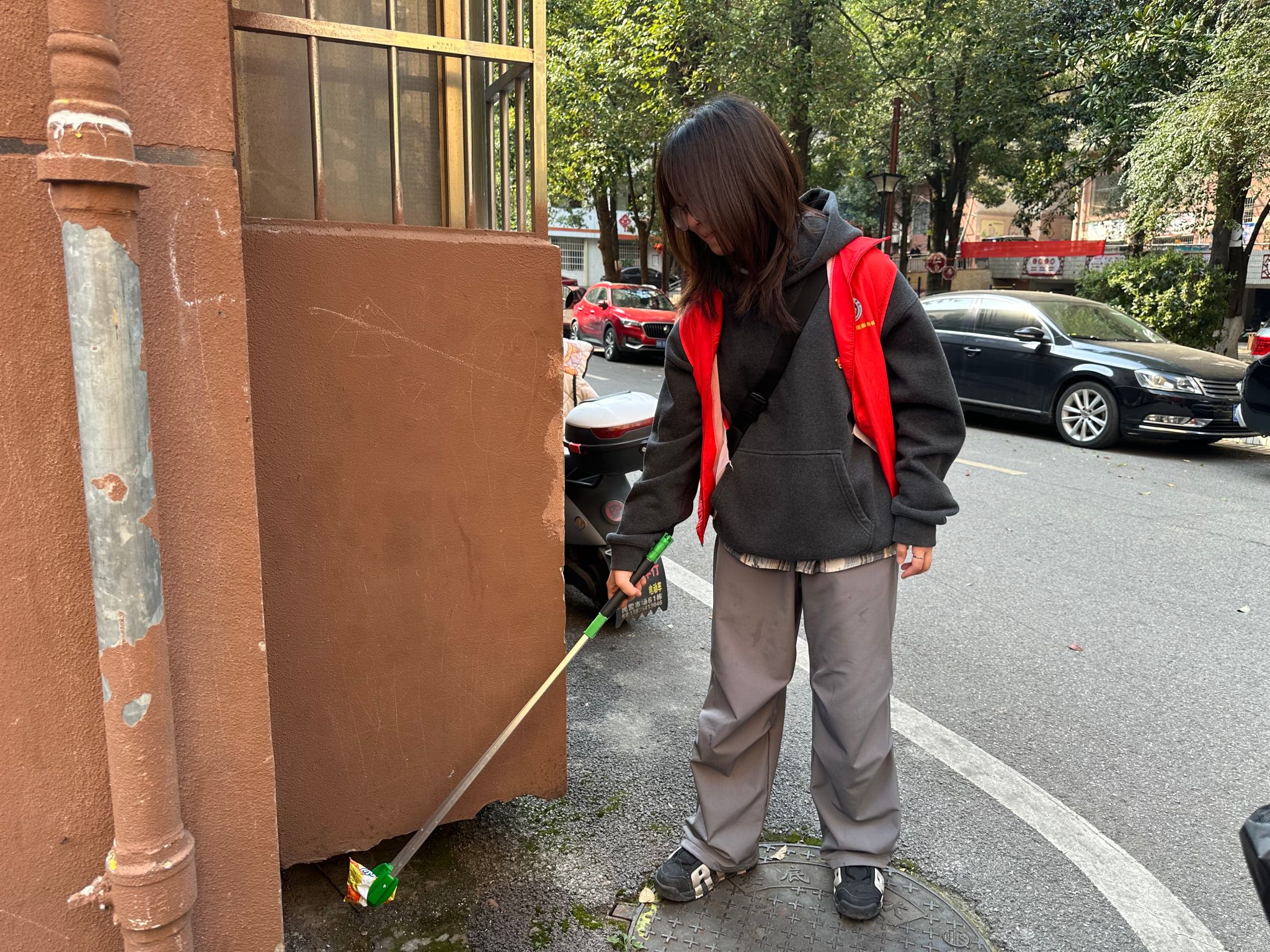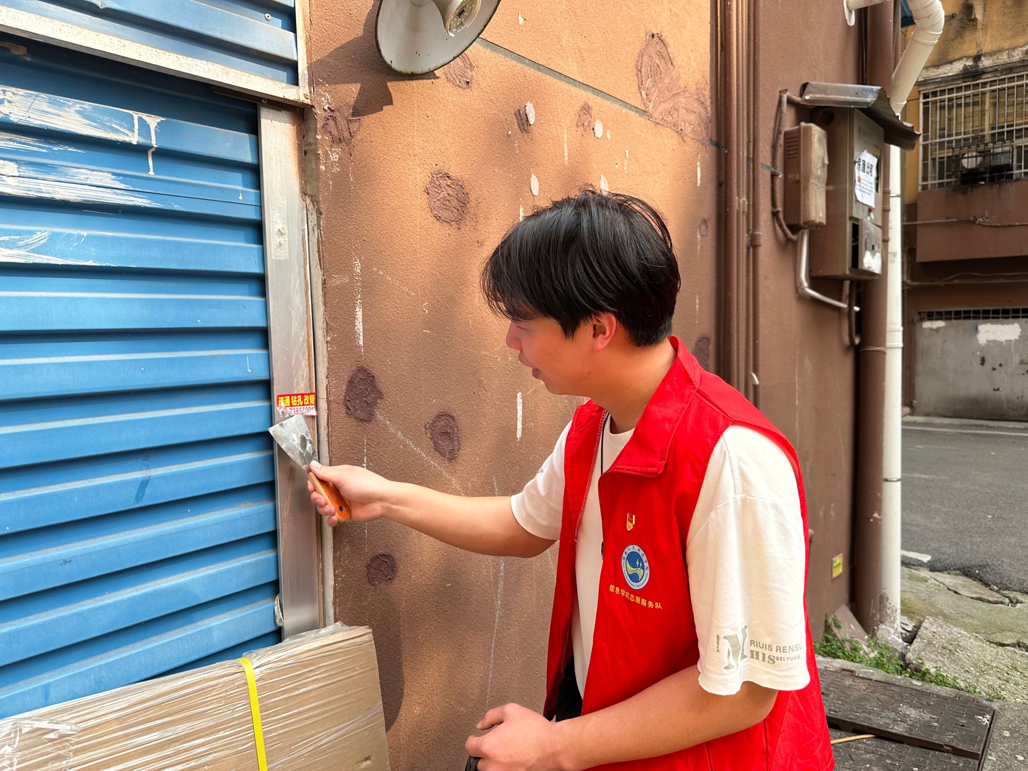 本次活动通过校地联动,以实际行动践行社会主义核心价值观,为社区环境治理注入青春动能。活动中,志愿者们分组深入社区各个角落,对社区主干道、绿化带及卫生死角进行全面清理。同时,针对楼道内顽固的“牛皮癣”小广告,志愿者们发扬“不怕脏、不怕累”的精神,用铲刀、喷壶等工具细致清除,恢复墙面整洁面貌。党员同志冲锋在前,青年志愿者紧随其后,热火朝天的劳动场面赢得了社区居民的频频点赞。
