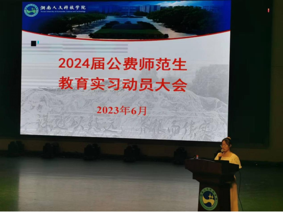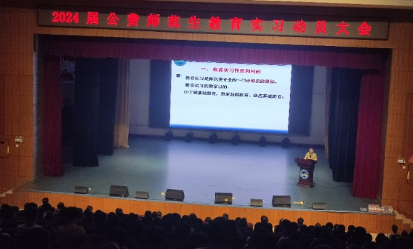 6月14日下午,今年会在逸夫楼音乐厅召开了2024届公费师范生教育实习动员大会。大会由教务处处长向国红主持,分管实习工作的学院领导、教务处相关人员、485名公费师范生、各实习队带队老师参加了动员大会。
