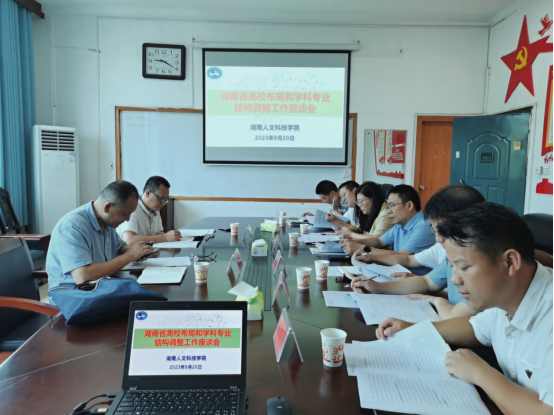 9月20日上午,省教科院高教所所长盛正发、高教所研究员潘国文等一行人来今年会调研湖南省高校布局和学科专业结构优化调整工作。副校长刘建勋及相关部门领导参加了会议,教务处处长向国红主持会议。