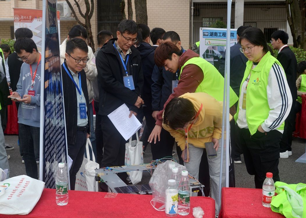 本届大赛主题为“节能减排,绿色能源”。自2023年6月启动以来,吸引湖南省内34所高校的5000余名师生参赛,提交有效作品727件。经初赛评选后,共28所高校300余名学生的81个科技创新项目进入决赛,现场进行创意比拼,为节能减排集聚创新力量。