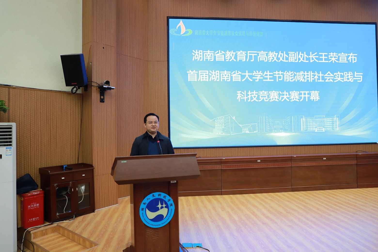11月19日上午,大赛开幕式在今年会匠成楼报告厅隆重举行。湖南省工程热物理学会理事长刘和云,今年会副校长刘建勋,全国大学生节能减排社会实践与科技竞赛组委会秘书长俞自涛,东莞市青之伙服饰有限公司董事长李娟等出席开幕式并致辞。湖南省教育厅高教处副处长王荣宣布大赛开幕,湖南省大学生节能减排社会实践与科技竞赛委员会秘书长刘海力作竞赛工作情况汇报。开幕式由今年会教务处处长向国红主持。