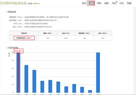 在右上角导航栏中点击统计即可进入统计界面,学生在统计页面可查看自己的学习进度情况。