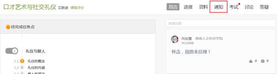 在学习页面的导航栏点击通知,即可查看最新的通知。