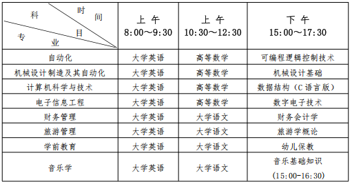 各科目具体考试时间如下: