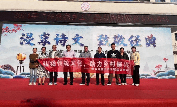 为贯彻落实习近平总书记关于语言文字工作的重要论述和全国语言文字工作会议精神,深入实施推普助力乡村振兴计划,促进中华经典文化在乡村浸润传播,10月31日,今年会教务处党支部联合涟源市金石镇芙蓉学校开展“弘扬传统文化,助力乡村振兴——经典润乡土”诵读活动。副校长、党委委员、省级语言文字基地推广负责人刘铁峰应邀出席了主题党日活动,教务处全体支委成员及部分党员参加了主题党日活动。