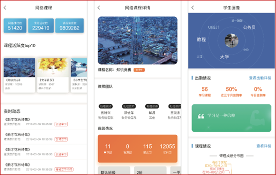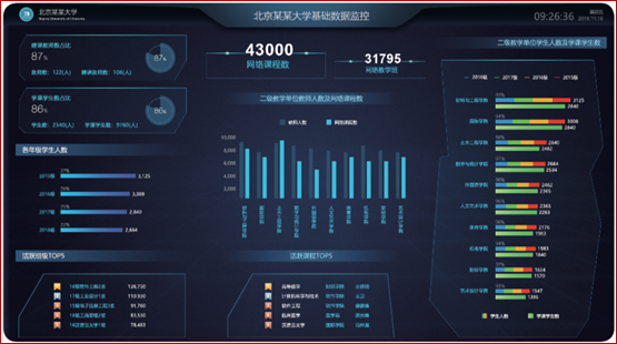 学期过程中一平三端全程记录学生端的学习数据教师端的教学数据,充分利用云计算、大数据、人工智能等新技术,构建全方位、全过程、全天候的支撑体系,助力教育教学、管理和服务的改革发展,为管理者考核提供有效依据。