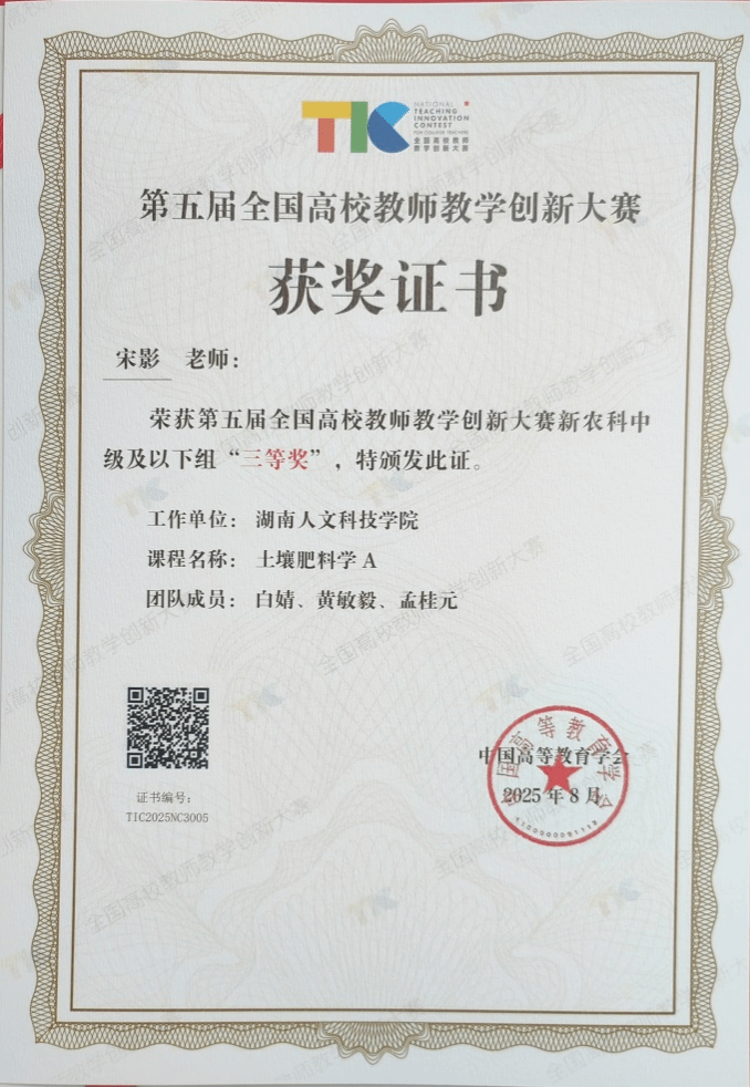 8月16日至19日,由教育部高等教育司指导、中国高等教育学会主办的第五届全国高校教师教学创新大赛决赛在北京举行。今年会农业与生物技术学院宋影教师团队荣获全国三等奖