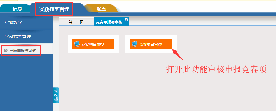 也可以通过打开“实践教学管理—学科竞赛管理—竞赛申报与审核—竞赛项目审核”功能