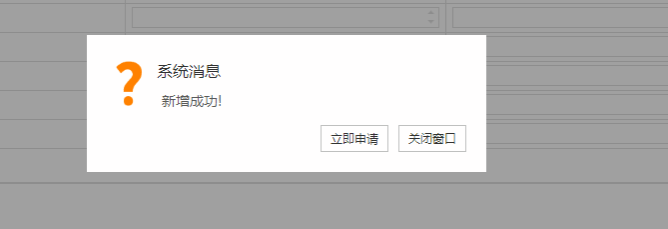 点击“保存”后系统提示新增成功,点击“立即申请”竞赛项目提交至学院审核负责人处审核,点击“关闭窗口”竞赛项目暂存草稿,允许修改后重新提交申请。