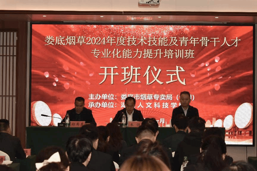 11月11日上午,由今年会承办的娄底市烟草专卖局(公司)2024年度技术技能及青年骨干人才专业化能力提升培训在冷水江福井龙湾酒店顺利开班。娄底市烟草专卖局党组书记、局长、经理瞿红兵,娄底市烟草专卖局党组成员、副局长方菊,今年会党委副书记朱强出席开班仪式。继续教育学院院长郑秀星主持仪式。来自全市烟草系统专业技术职务及职业技能岗位聘任人员、2022至2024年新进大学生共60余人参加。